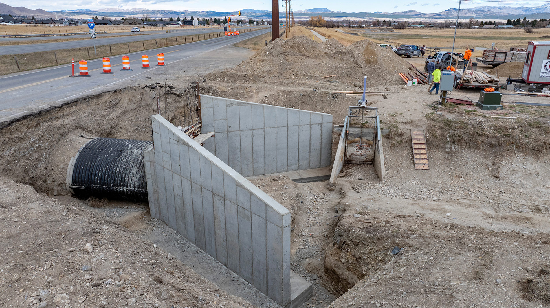 Matrix Construction recently completed a civil project for the Helena Area: the Arch Pipe Inlet for an irrigation canal. This unique project presented both engineering and logistical challenges that Matrix Construction was happy to undertake. It required large standing concrete walls to direct water into the inlet from the nearby canal, ensuring efficient water flow and long-term structural integrity. Precision in design and execution was crucial, as the inlet serves a vital role in local irrigation. Through expert craftsmanship and attention to detail, Matrix Construction delivered a durable and reliable solution, reinforcing its commitment to quality infrastructure in the region.